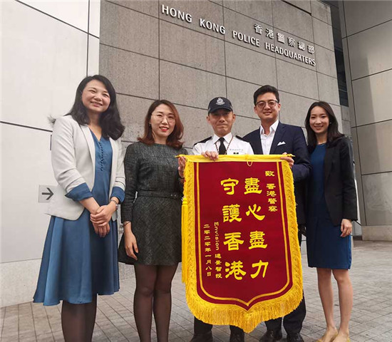 Envision遠景智投团队赠锦旗:致香港警察———盡心儘力 守護香港
