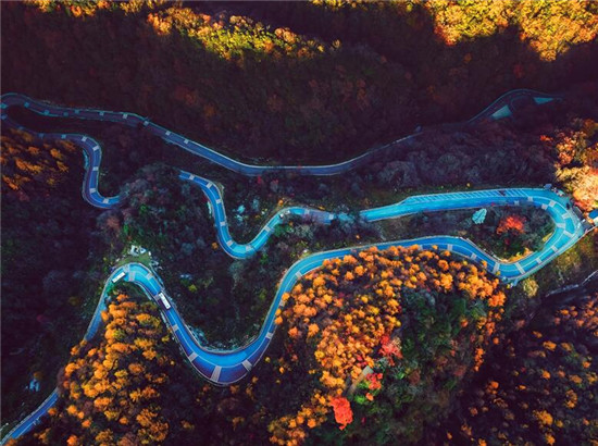 光雾山蜿蜒的公路如山间蟠龙。 胡鹏