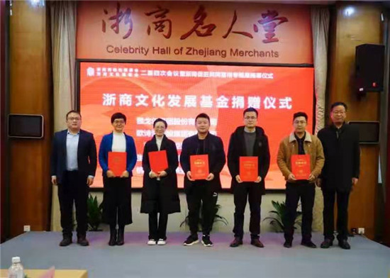 会上,雅戈尔、西子联合控股、欧诗漫、民生药业、艺福堂等浙商企业向浙江工商大学教育基金会捐赠了浙商文化发展基金,专项用于浙商名品馆建设;另外,授予浙江省企业管理科学促进会、浙江省企业社会责任促进会、浙江省职业经理人协会、浙江省数字经济学会、海亮集团、宋城集团、亚厦集团、现代集团等为最新一批浙商文化共建单位并启动求索“共富路”新生代浙商2022系列寻访活动仪式。
