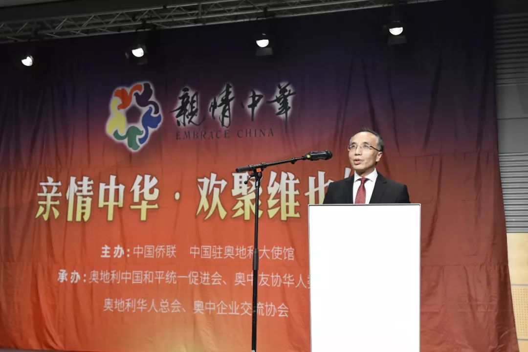 李晓驷大使也上台致辞,在祖国母亲即将迎来70岁华诞之际,“亲情中华”艺术团来到了维也纳,带来了祖国的问候与温暖,对于承办此次盛会的各侨团李大使表达了诚挚的感谢。中国共产党在过去70年里带领大家从站起来、富起来到强起来的伟大复兴,历史告诉我们,每个人的前途命运都与国家民族相关,祖国建设离不开海外侨胞的共同努力,海外侨胞的福祉也离不开伟大祖国,中国正在努力建设小康社会,完成第一个百年目标,向第二个百年目标迈进,希望海外侨胞为实现中华民族伟大复兴的中国梦贡献力量,祝今晚的演出成功。