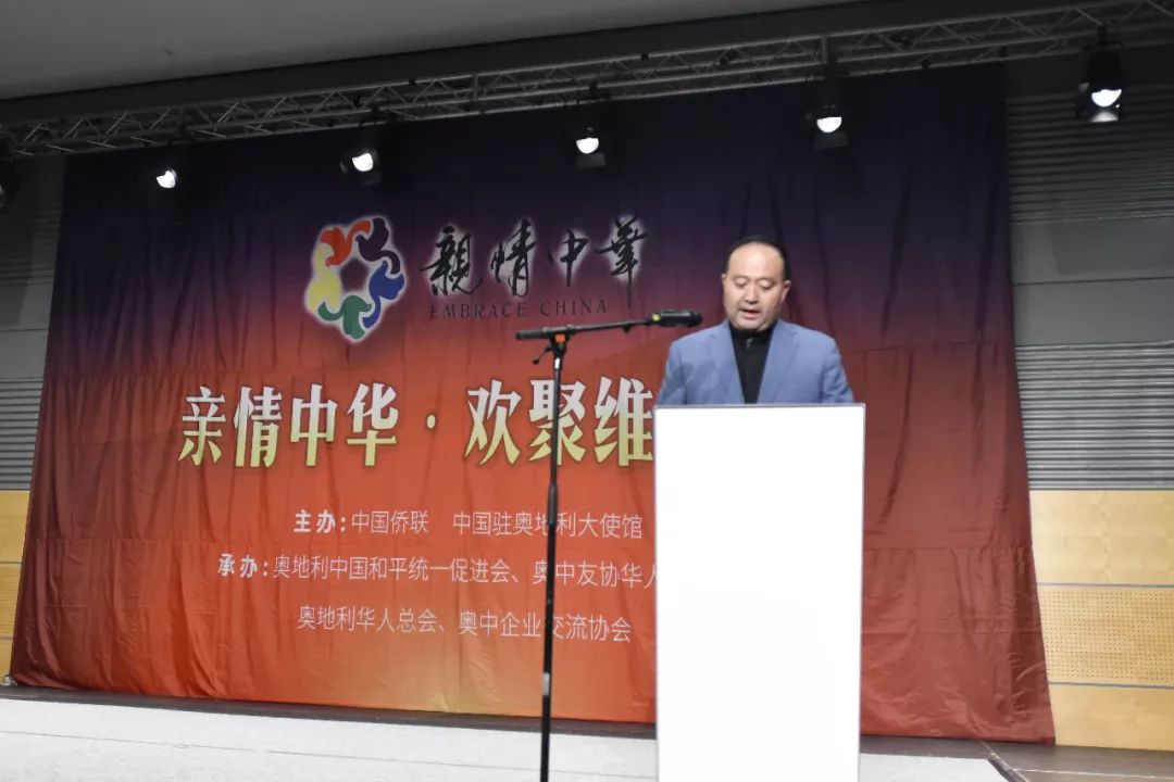 陈少雄会长致辞,自成立以来“亲情中华”就多次拜访维也纳,今年已经是第六次“亲情中华”走进维也纳,这是中国侨联对于我们旅奥华人华侨的深切关怀,是我们莫大的荣幸。