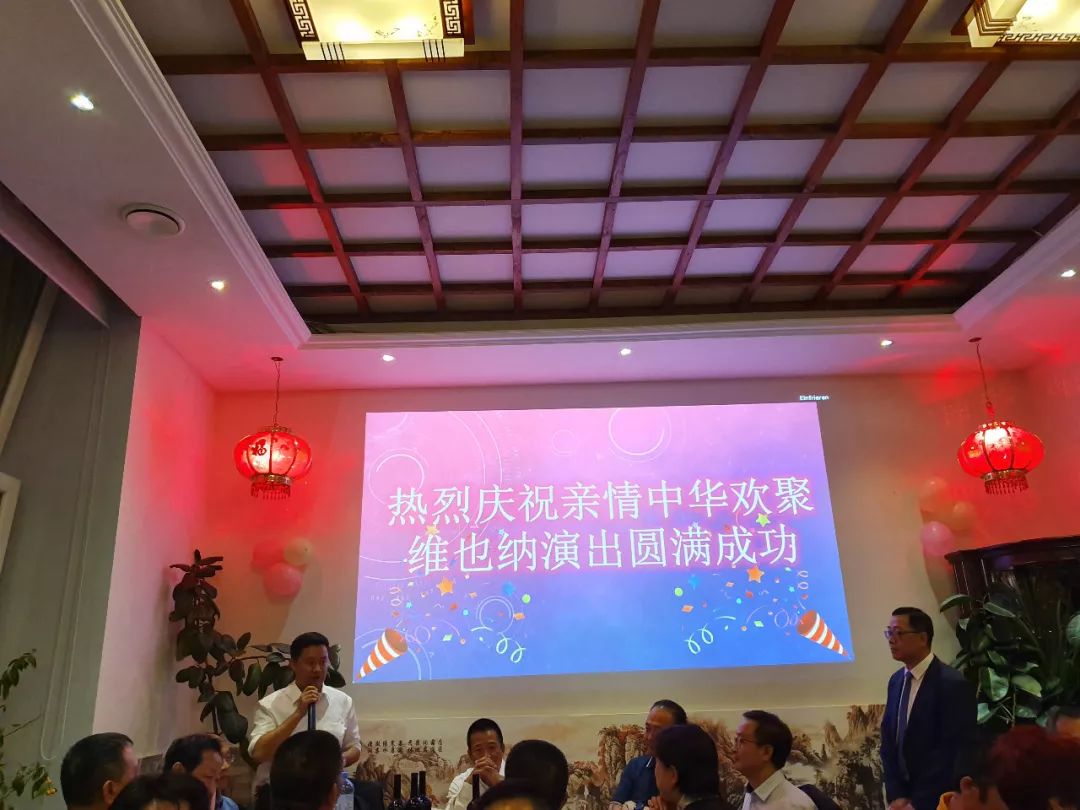 演出圆满成功后举办了庆功宴!由奥中友协华人委员会秘书长王建雄主持,执行主席陈志石致词。