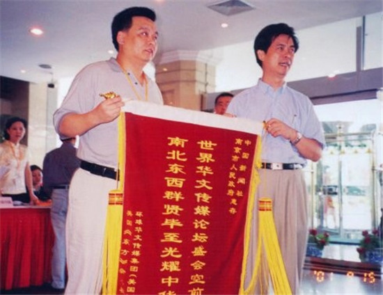 一阵后,就见校长双手抓着支票,对着话筒高声说:“同学们!我校七三届校友田渠成向母校捐献十万元人民币!让我们以热烈的掌声,表示衷心的感谢!并请田渠成校友上主席台就坐!”