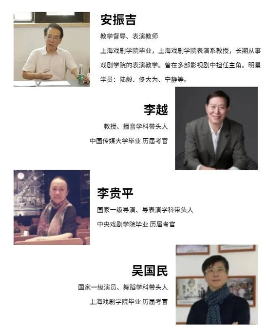 上海戏剧学院、中央戏剧学院、北京电影学院、中国传媒大学、上海大学、上海师范大学、同济大学、华东师范大学、南京艺术大学、吉林艺术学院、浙江传媒学院、上海视觉艺术学院、上海政法大学等