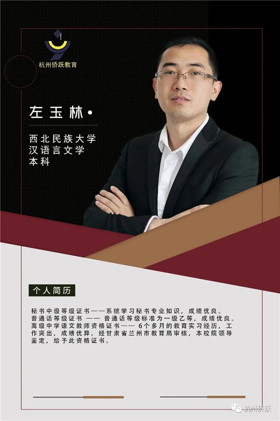 杭州侨跃教育坐落在杭州钱塘江畔星光之城滨江区,从事教育培训行业15年,在教育行业有资深的办学经验,业务范围涵盖:华侨港澳台联考,海外华文教育,出国留学,海外置业移民,以及国内中高考教育5个模块服务。目前已有海外学员上千名,上百名海外华侨学员,通过网校学习顺利回国考上中国大学,2020年本科率100%,名校率80%的优异成绩,从2020年开始办线下全日制华侨港澳台联考高中课程,集聚杭城优质师资力量,为海外华侨港澳台子女提供多元升学方案,为参加全国联招考试的学子,提供专业培训和服务,助力华侨子女985/211中国名校梦想,全国首创第一所华侨港澳台联考网校, 让海外学子提供足不出户的享受中国基础教育课程体验,目前在国内各个省市设立多个服务中心,计划在2025年之前完成国内外300家海内外服务中心,实现“百城千店,共筑子女中外名校之路“梦想”培训体系成熟,多种考前备考高分培训方案,寒暑假集训,考前冲刺,杭州全日制高中寄宿制学习方式,提供在线直播课程到全球各个华侨华人家庭,迄今为止为5000个家庭普及了华侨生联考报考免费咨询服务,顺利考取北京大学,复旦大学,华东政法大学,华东理工大学等国内知名重点名校,收到海内家长大力支持和认可!